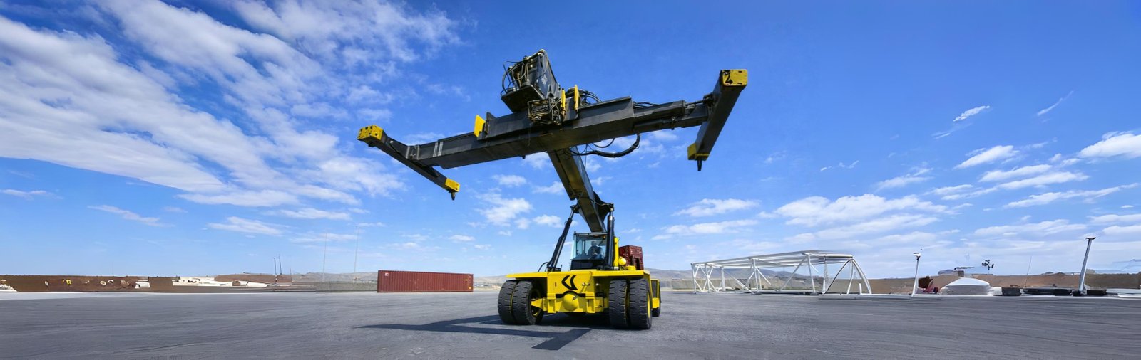 Servicio de grúa porta contenedor para carga, descarga y traslado seguro, con equipos certificados y operadores especializados.